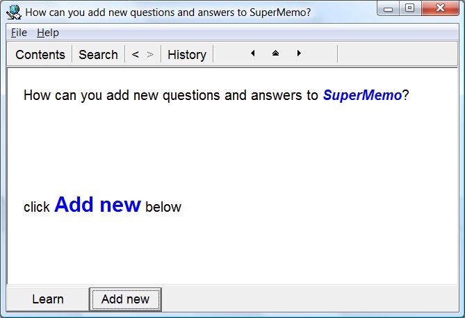 | 16:54, 3 October 2013 | 877 × 628 (49 KB) | SuperMemoHelp (talk | contribs) | An updated screenshot with the new element window's navigation bar | ||