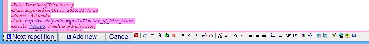 | 18:18, 17 October 2013 | 1,291 × 157 (39 KB) | SuperMemoHelp (talk | contribs) | The '''Format''' toolbar docked at the learnbar. It features the options for modifying text and component attributes of your elements |